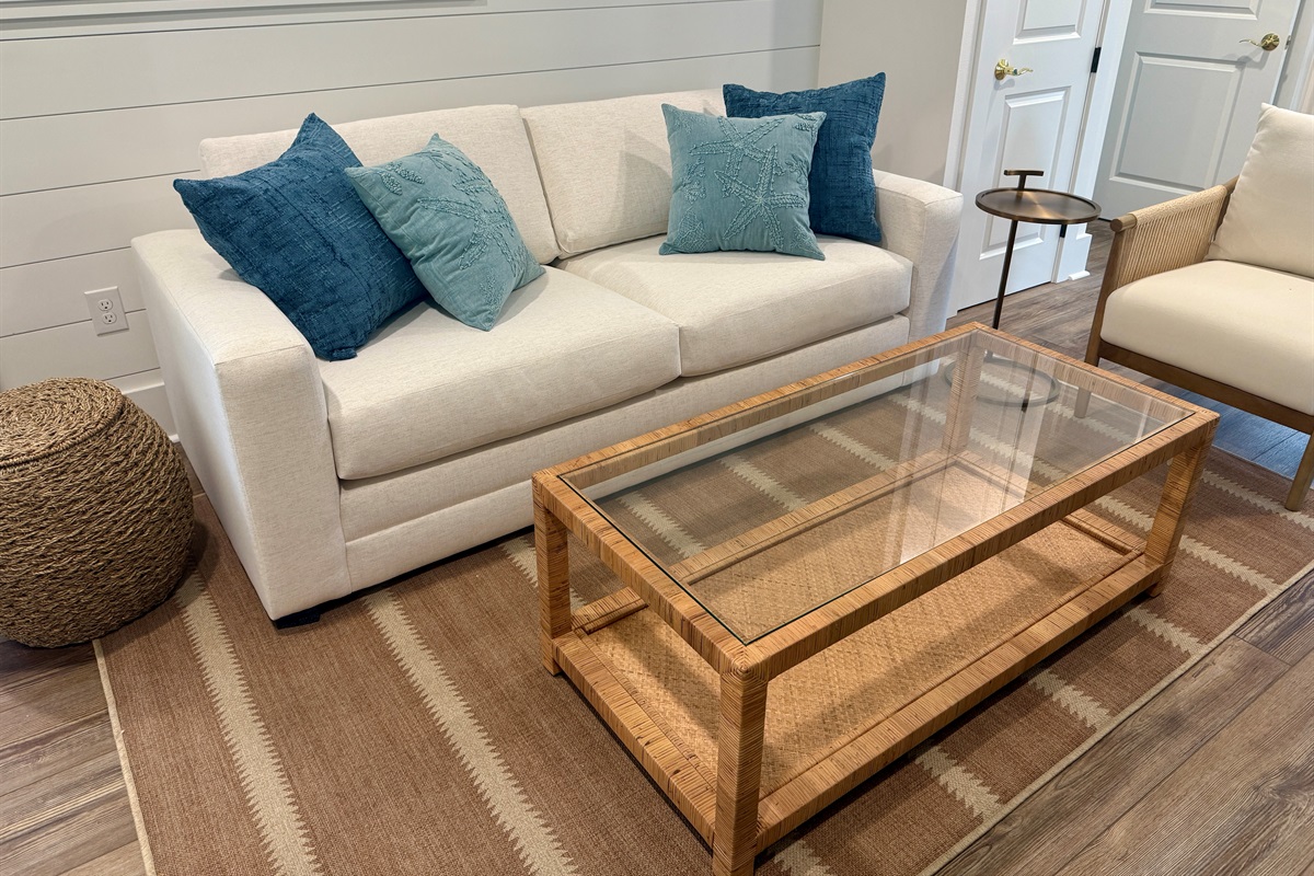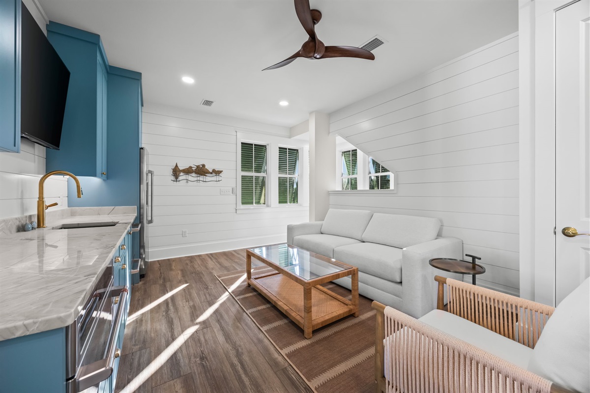 Anchor Down By the Dunes* is a charming and stylish 2-bedroom guest house offering its own kitchenette, living space, and inviting porches. A private indoor game room is located on the ground level below the living space, and guests also enjoy access to the shared pool and spa, firepit, and the beautiful Magnolia Mooring property. Perfect for couples, small families, or guests wanting privacy and comfort near the Gulf Coast.